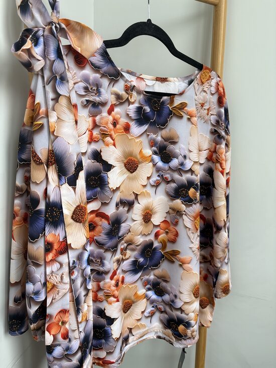 Puķaina sieviešu blūze ar jostu.S-4XL